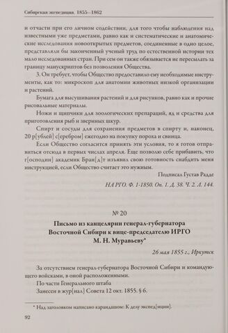 Письмо из канцелярии генерал-губернатора Восточной Сибири к вице-председателю ИРГО М. Н. Муравьеву. 26 мая 1855 г., Иркутск