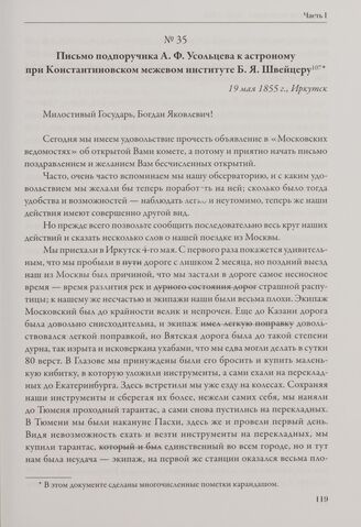 Письмо подпоручика А. Ф. Усольцева к астроному при Константиновском межевом институте Б. Я. Швейцеру. 19 мая 1855 г., Иркутск // НА РГО. Ф. 1-1850. Оп. 1. Д. 38. Ч. 2. Л. 229-236.
