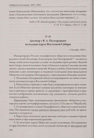Договор с В. А. Полторацким на издание карты Восточной Сибири. 1 декабря 1861 г. // НА РГО. Ф. 1-1861. Оп. 1. Д. 18.