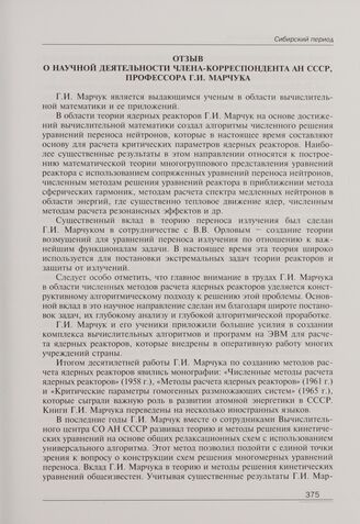 Отзыв о научной деятельности члена-корреспондента АН СССР, профессора Г.И. Марчука председателя Сибирского отделения АН СССР академика М.А. Лаврентьева. 1 октября 1968 г.