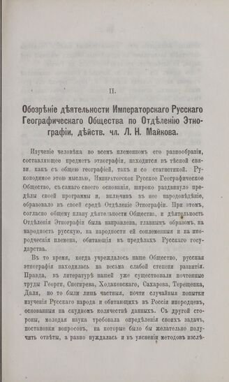Обозрение деятельности Императорского Русского Географического Общества по Отделению Этнографии, действ. чл. Л.Н. Майкова