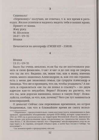 Письма М. А. Шолохова А. И. Сергину. Вешки. 13.11.<19>35