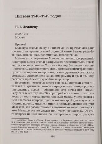 И. Г. Лежневу 28.IX.1940 Москва // Впервые: Дворяшин Ю. А. Вс. Вишневский о «Тихом Доне» в переписке с И. Лежневым // Мир Шолохова. 2017. № 2 (8). С. 94. Печатается по авторизованной машинописи (РГАЛИ. Ф. 1038. Оп. 1. Ед. хр. 2376. Л. 5).