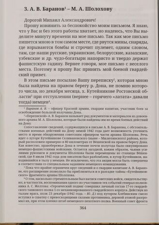 А. В. Баранов - М. А. Шолохову 06.IV.1943 // Впервые: Дворяшин Ю. А. С думой о Родине // Дворяшин Ю. А. М. Шолохов: грани судьбы и творчества. М.: Синергия, 2005. С. 201-202. Печатается по автографу (РГАЛИ. Ф. 631. Оп. 15. Ед. хр. 641. Л. 118).