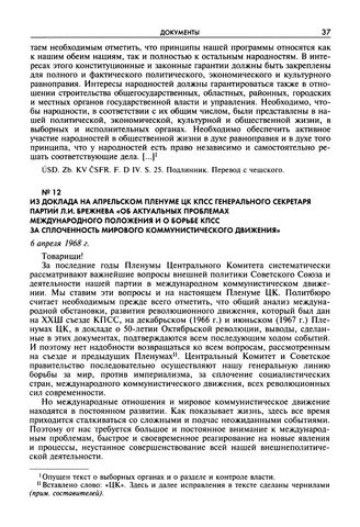 Из доклада на апрельском пленуме ЦК КПСС Генерального секретаря партии Л.И. Брежнева «Об актуальных проблемах международного положения и о борьбе КПСС за сплоченность мирового коммунистического движения». 6 апреля 1968 г.