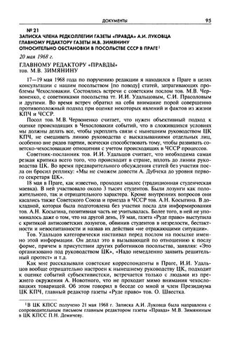 Записка члена редколлегии газеты «Правда» А.И. Луковца главному редактору газеты М.В. Зимянину относительно обстановки в посольстве СССР в Праге. 20 мая 1968 г.