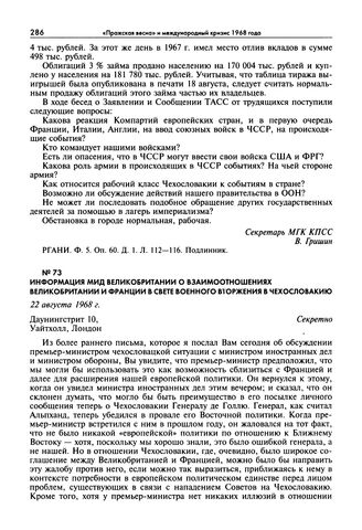 Информация МИД Великобритании о взаимоотношениях Великобритании и Франции в свете военного вторжения в Чехословакию. 22 августа 1968 г., Лондон // TNA. PREM 13/1993/25. Подлинник. Перевод с английского.