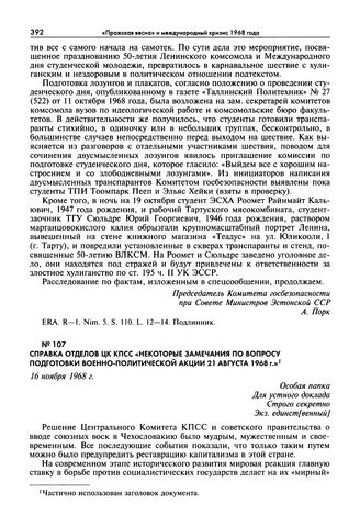 Справка отделов ЦК КПСС «Некоторые замечания по вопросу подготовки военно-политической акции 21 августа 1968 г.». 16 ноября 1968 г.