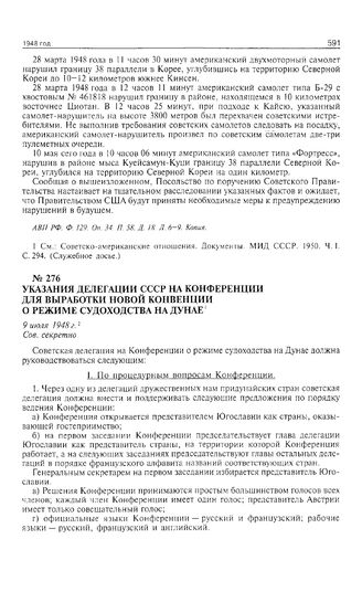 Указания делегации СССР на Конференции для выработки новой конвенции о режиме судоходства на Дунае. 9 июля 1948 г. // АВП РФ. Ф. 07. Оп. 21м. П. 55. Д. 1. Л. 88-91. Копия.