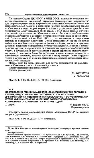 Главная Серия «Россия. XX век. Документы» Встречи и переговоры на высшем уровне руководителей СССР и Югослави... Встречи и переговоры на высшем уровне руководителей СССР и Югослави... Постановление Президиума ЦК КПСС «Об увеличении срока погашения кре...