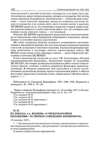 Из доклада А.А. Жданова «О международном положении» на первом совещании Коминформа. 25 сентября 1947 г. // Публикуется по: Информационное совещание представителей некоторых компартий в Польше в конце сентября 1947 года. ОГИЗ: Госполитиздат. [б. м.] 1948. С. 30-35.