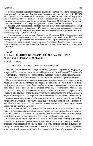 Постановление Политбюро ЦК ВКП(б) «Об опере “Великая дружба”» В. Мурадели». 10 февраля 1948 г.