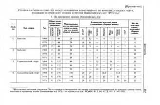 Приложение к записке Комитета по физической культуре и спорту при Совете Министров СССР в ЦК КПСС. Справка о соотношении сил между основными конкурентами по комплексу видов спорта, входящих в программу зимних и летних Олимпийских игр 1972 года // РГАНИ. Ф. 5. Оп. 63. Д. 103. Л. 344-346. Подлинник.