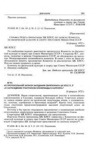 Из протокольной записи заседания Секретариата ЦК КПСС п. 3 «О награждении участников Олимпиады в Саппоро». 16 февраля 1972 г.