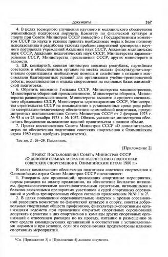 Приложение 2 к записке Комитета по физической культуре и спорту при Совете Министров СССР в ЦК КПСС. Проект постановления Совета Министров СССР «О дополнительных мерах по обеспечению подготовки советских спортсменов к Олимпийским играм 1980 г.» // РГАНИ. Ф. 5. Оп. 75. Д. 307. Л. 30-32. Подлинник.