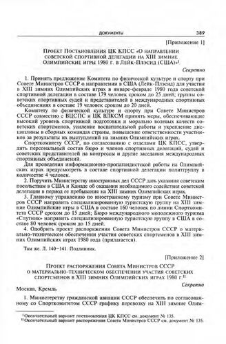 Приложение 2 к записке Комитета по физической культуре и спорту при Совете Министров СССР в ЦК КПСС. Проект распоряжения Совета Министров СССР о материально-техническом обеспечении участия советских спортсменов в XIII зимних Олимпийских играх 1980...