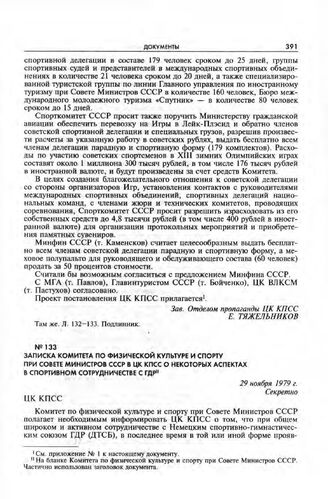 Записка Комитета по физической культуре и спорту при Совете Министров СССР в ЦК КПСС о некоторых аспектах в спортивном сотрудничестве с ГДР. 29 ноября 1979 г. // РГАНИ. Ф. 5. Оп. 76. Д. 202. Л. 51-56. Подлинник.