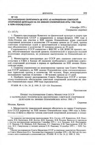 Главная Серия «Россия. XX век. Документы» Белые игры под грифом «секретно»: Советский Союз и зимние Олимпиады... Приложение к постановлению Секретариата ЦК КПСС. Проект распоряжени...
