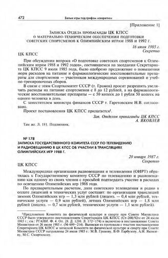 Приложение 1 к записке Комитета по физической культуре и спорту при Совете Министров СССР в ЦК КПСС. Записка Отдела пропаганды ЦК КПСС о материально-техническом обеспечении подготовки советских спортсменов к Олимпийским играм 1988 и 1992 г. 16 июл...