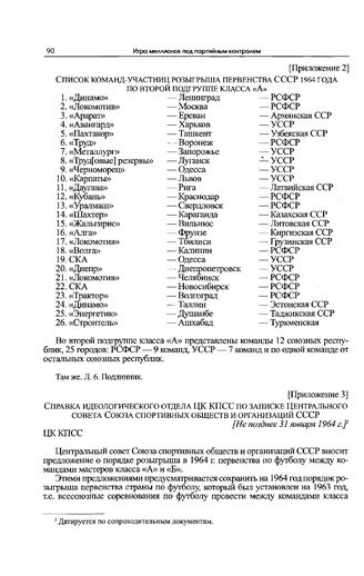 Приложение 3 к записке Спорткомитета СССР в ЦК КПСС. Справка идеологического отдела ЦК КПСС по записке Центрального совета Союза спортивных обществ и организаций СССР. [Не позднее 31 января 1964 г.]