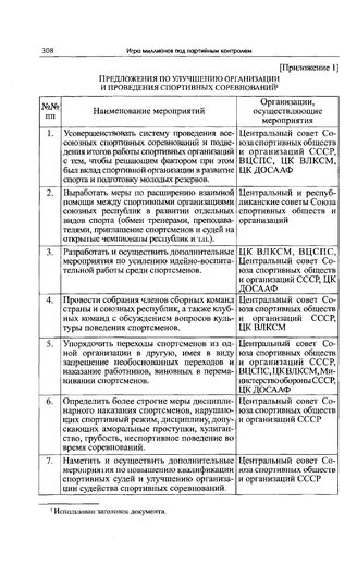 Приложение 1 к записке отделов ЦК КПСС. Предложения по улучшению организации и проведения спортивных соревнований