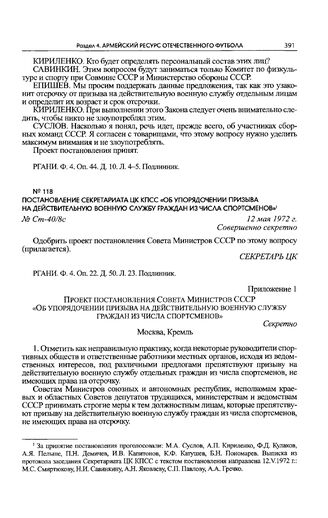 Приложение 1 к постановлению Секретариата ЦК КПСС. Проект постановления Совета Министров СССР «Об упорядочении призыва на действительную военную службу граждан из числа спортсменов»