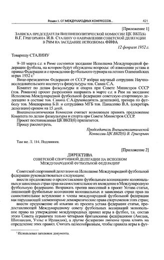 Приложение 2 к постановлению Политбюро ЦК ВКП(б). Директива советской спортивной делегации на Исполком Международной футбольной федерации