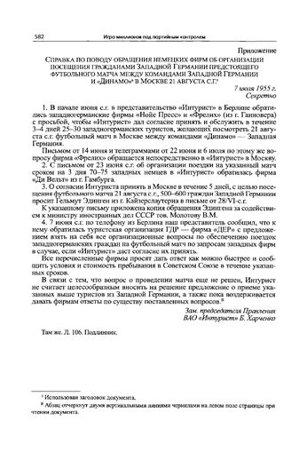 Приложение к записке BAO «Интурист» в ЦК КПСС. Справка по поводу обращения немецких фирм об организации посещения гражданами Западной Германии предстоящего футбольного матча между командами Западной Германии и «Динамо» в Москве 21 августа с.г. 7 и...