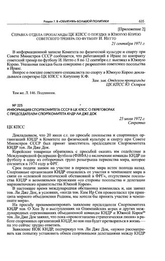 Информация Спорткомитета СССР в ЦК КПСС о переговорах с председателем Спорткомитета КНДР Ли Дже Док. 25 июля 1972 г.