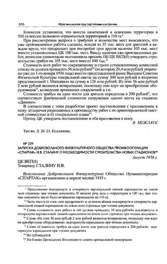 Записка Добровольного Физкультурного Общества Промкооперации «Спартак» И.В. Сталину о необходимости строительства новых стадионов. Август 1936 г. // РГАНИ. Ф. 3. Оп. 36. Д. И. Л. 17-19.