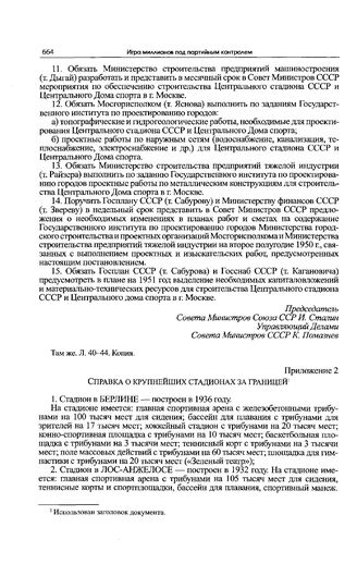 Приложение 2 к записке члена Политбюро ЦК ВКП(б) Л.П. Берия И.В. Сталину. Справка о крупнейших стадионах за границей