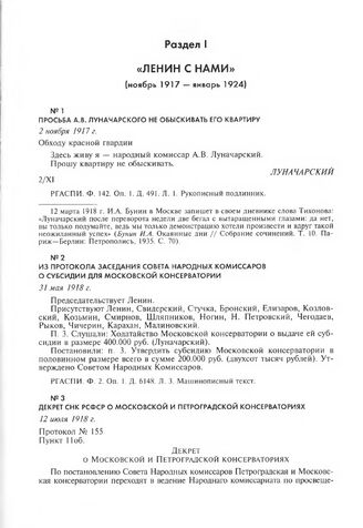 Декрет СНК РСФСР о Московской и Петроградской консерваториях. 12 июля 1918 г. // РГАСПИ. Ф. 2. Оп. 1. Д. 6567. Л. 1. Фотография. Машинописный подлинник. Опубликован без указания на исправления: Декреты Советской власти. Т. 3. М.: Издательство политической литературы. 1964. С. 11-12.