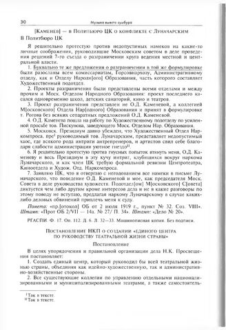 Материалы к постановлению Оргбюро ЦК ВКП(б) о театральном отделе. Постановление НКП о создании «единого центра по руководству театральной жизни страны»