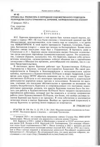 Главная Серия «Россия. XX век. Документы» Музыка вместо сумбура: Композиторы и музыканты в Стране Советов. 19... Справка М.А. Трилиссера о сотруднике художественного подотдела полп...