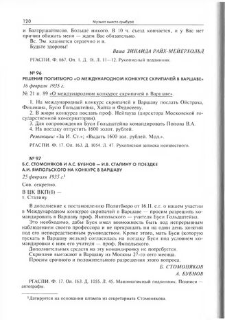 Б.С. Стомоняков и А.С. Бубнов - И.В. Сталину о поездке А.И. Ямпольского на конкурс в Варшаву. 25 февраля 1935 г.