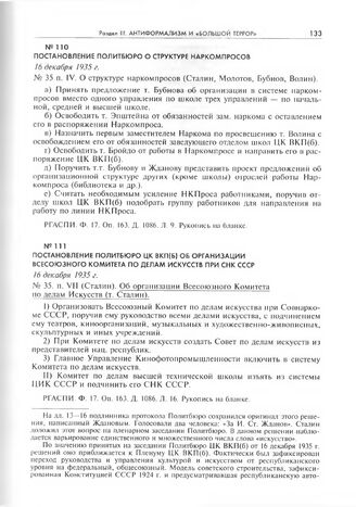 Постановление Политбюро о структуре наркомпросов. 16 декабря 1935 г.