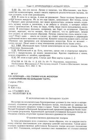 П.М. Керженцев - И.В. Сталину и В.М. Молотову «О мероприятиях по Большому театру». 3 апреля 1936 г.
