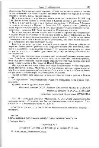 Постановление Пленума ЦК ВКП(б) о гимне Советского Союза. 27 января 1944 г.