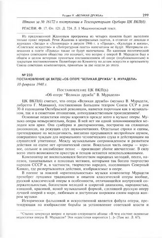 Постановление ЦК ВКП(б) «Об опере "Великая дружба" В. Мурадели».10 февраля 1948 г.