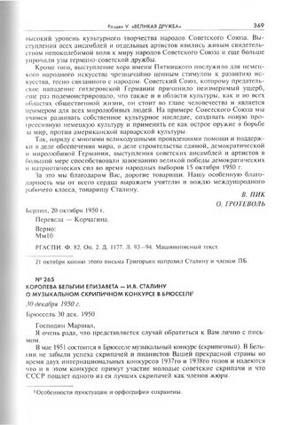 Королева Бельгии Елизавета - И.В. Сталину о музыкальном скрипичном конкурсе в Брюсселе. 10 декабря 1950 г.