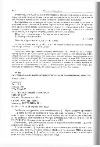Р.А. Руденко - Н.Н. Шаталину о пересмотре дела по обвинению артистки ... 3 июля 1954 г.