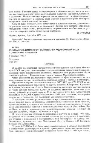 Главная Серия «Россия. XX век. Документы» Музыка вместо сумбура: Композиторы и музыканты в Стране Советов. 19... Справка КГБ о деятельности самодельных радиостанций в СССР и о репе...