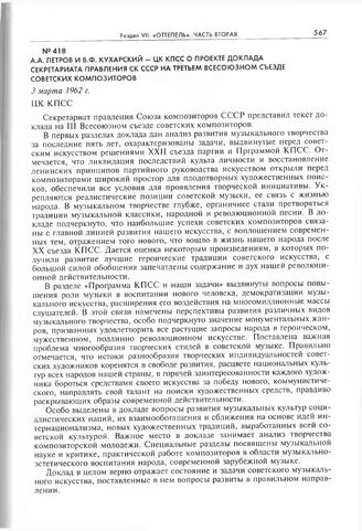 А.А. Петров и В.Ф. Кухарский - ЦК КПСС о проекте доклада секретариата Правления СК СССР на третьем Всесоюзном съезде советских композиторов. 3 марта 1962 г. // РГАНИ. Ф. 5. Оп. 36. Д. 144. Л. 3-6. Машинописный подлинник.