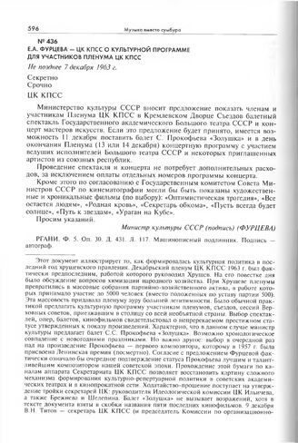 Е.А. Фурцева - ЦК КПСС о культурной программе для участников пленума ЦК КПСС. Не позднее 7 декабря 1963 г.