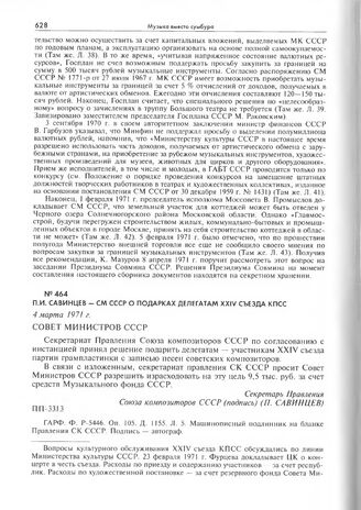 П.И. Савинцев - СМ СССР о подарках делегатам XXIV съезда КПСС. 4 марта 1971 г.