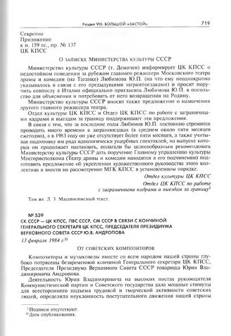 Приложение к постановлению Секретариата ЦК КПСС. О записке Министерства культуры СССР