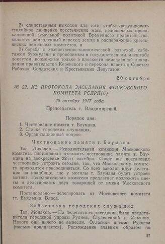 Из протокола заседания Московского комитета РСДРП(б). 20 октября 1917 года // Архив Института истории партии МГК ВКП(б), д. Копий, № 62.