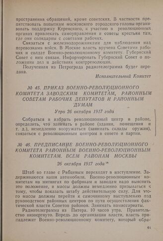 Предписание Военно-революционного комитета районным Военно-революционным комитетам. Всем районам Москвы. 26 октября 1917 года // ЦАОР, ф. 1, д. № 447/115, л. 2.
