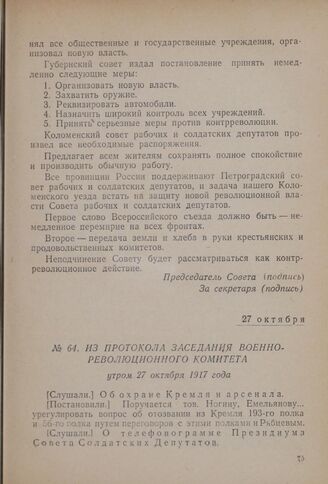 Из протокола заседания Военно-революционного комитета. Утром 27 октября 1917 года