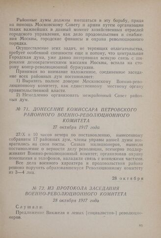 Из протокола заседания Военно-революционного комитета. 28 октября 1917 года // ЦАОР, ф. 1, д. № 710/113, л. 1-2.